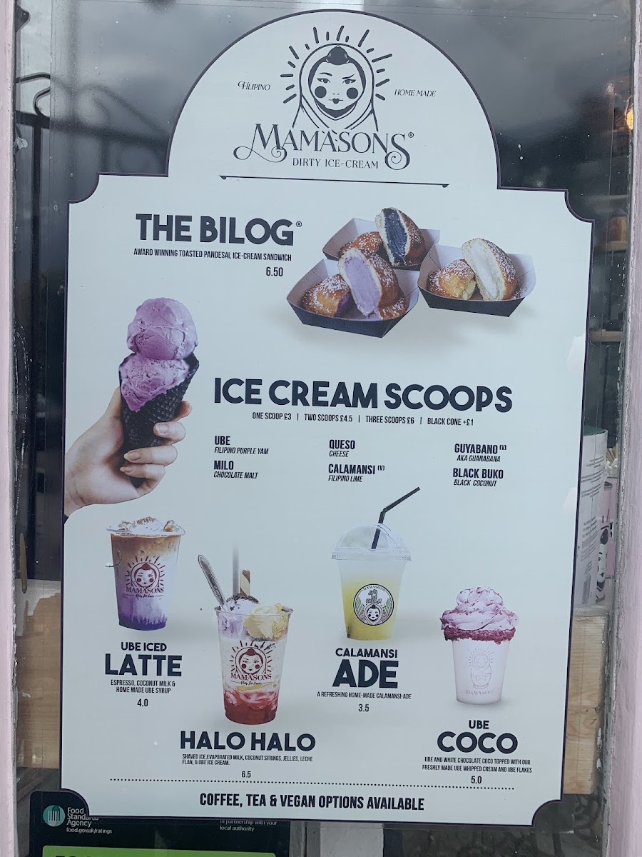 But Mamasons is more than just ice cream; it's an experience. The famed Bilog, an award-winning toasted pandesal ice cream sandwich, is a must-try at just £6.50. Picture biting into warm, fluffy bread encasing glorious ice cream, a delightful juxtaposition of textures that will leave you craving more. And for those who love a refreshing drink, the CalamansiAde offers a beautifully citrusy twist at only £3.00 – perfect on a sunny day or as a palate cleanser between flavors.